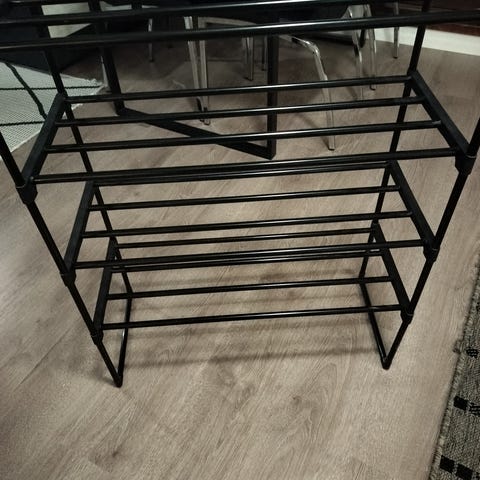 Suunniteltu alunperin usean diaprojektorin yhteiskäyttöön, multiviso-ohjema. Voit käyttää esim.innovatiivisena kenkähyllynä. Kolme kääntyvää hyllyä. kork. 69cm, lev. 50cm syvyys. 33 cm ja hyllyjen väli 26cm. 2kpl mustia ja myydään yhdessä! Hyllyt ja rungot vahvaa terästä.