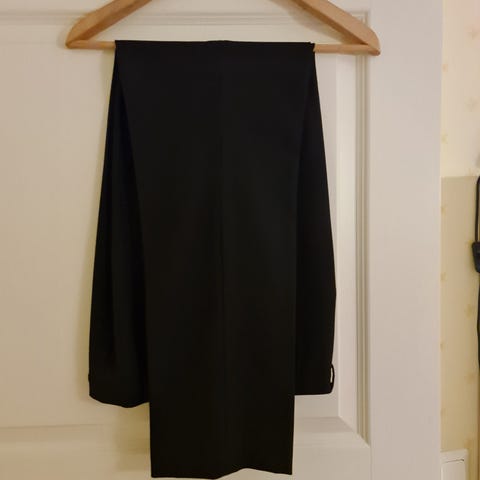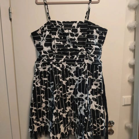 Mustavalkoinen Steilmann mekko, jonka ylä-osa on trikoota, ja alaosa kangasta. Takana vetoketju, ja mekossa vuori. Koko 44