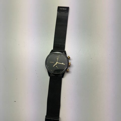 Hyväkuntoinen rannekello, jossa päivämäärän näyttävä ominaisuus. Hyvin vähän käytetty. Siistin pakkauksensa ansiosta sopii hyvin vaikka lahjaksi. Rannekkeen pituus on säädettävissä ja se on myös helposti vaihdettavissa.