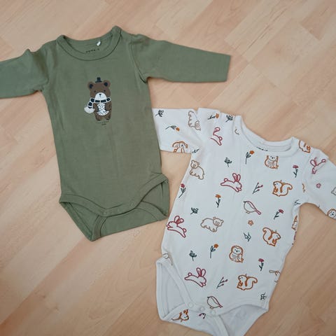 Myydään kerran päällä käytetyt body+housut koossa 56 (name it).