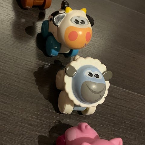 Playskool puna/lila/kelta/oranssi kana renkailla. Muovia.