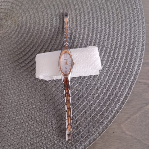 Uusi siro hopean värinen kello taulu on 2 senttiä ja koko kellon pituus 18 centtiä mukana tulee pala josta voi ranteen mukaan vaikka lisätä yksi pala on noin puoli centtiä.