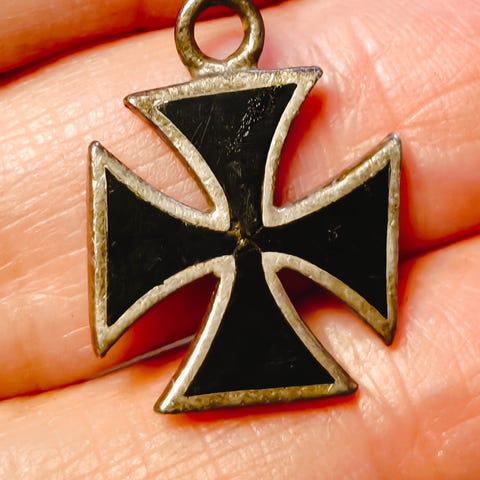 Näyttävä, kaunis, koristeellinen risti ilman ketjua.En lyödä hopeanmerkkejä rististä. Vuosikymmeniä vanha mutta edelleen siisti.