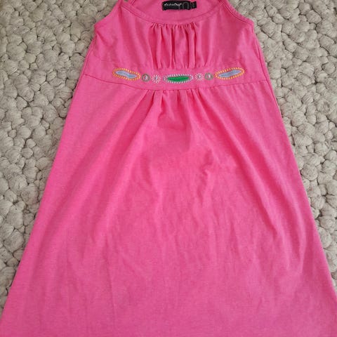 Vaaleanpunainen kukallinen mekko koko 128cm
