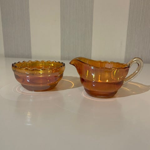 Riihimäen sininen sokerikko/kermakko. Sokerikon halk.9cm,kork.5cm. Kermakon halk.6cm,kork.7,5cm. Hinta yhteensä 20 €.
