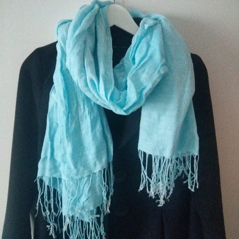Sininen kukallinen huivi, koko 175x80, 70% viskoosia/30% silkkiä