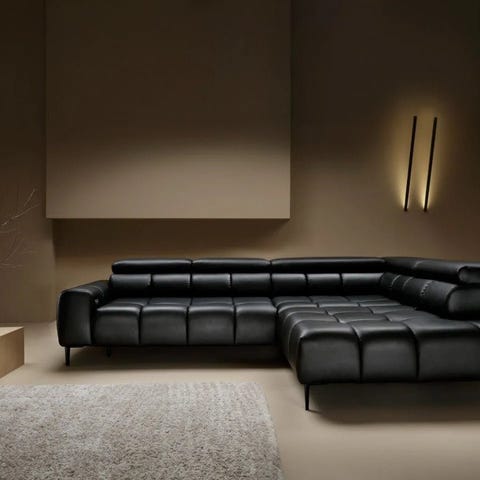 Miltei uuttavastaavassa kunnossa oleva kulmasohva. Istuintyynyt ovat luksus Alcantara keinokuitukangasta, joka muistuttaa kovasti mokkanahkaa. Helppo puhdistaa saippualla ja vedellä ja imuroimalla.