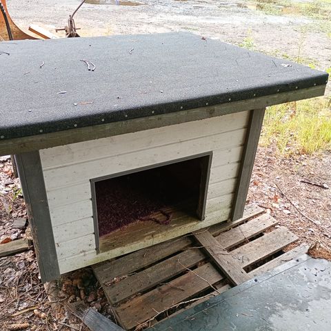 Koirankoppi 125x85cm ulkomitta kork.95cm. Eristys. Lattia 5cm styrox seinät .Villa 7cm. Katto. 10cm styrox. Huopakatto. Ulkovuori pontattu ulkovuorilauta. Sisällä paneelit. Kuljetus myös Poriin Satakuntaan. Pientäkorvausta vastaan. Tiedustelut. Koppi Lammilla. Väri valittavissa Myös 2 aukolla.
