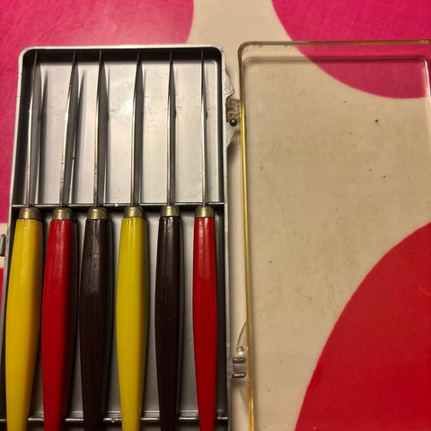 Näitä settejä valmistettiin aikanaan ainakin vihreänä, punaisena ja keltaisena.