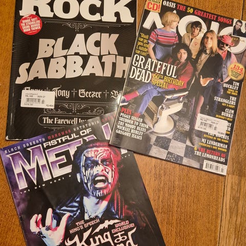 Myytävänä useita vuosikertoja seuraavia rock- ym. lehtiä: Mojo, Uncut, Q, Word, Record Collector, Vox, Select, Rytmi, Image, Rumba ja Soundi. Lisäksi pienempiä määriä tai yksittäiskappaleita seuraavista: New Musical Express, Classic Rock, WUM (= Wanha & Uusi Musa), Sue, Revolver, Bang, Vinylmania, Pahkasika, Pop, Rare, Rat Beat, What Goes On, Spin, Musician, Dark Star ja Circus. Täyden vuosikerran tai sitä vastaavan kappalemäärän hinta on 20 € ja yksittäisten lehtien 2 €/kpl paitsi Soundit 35 €/vuosikerta ja yksittäiset lehdet 3 €/kpl. Nouto tai ostaja maksaa lähetyskulut.