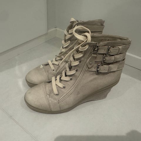 Käyttämättömät beiget nilkkurit, joissa nauhat ja vetoketjut