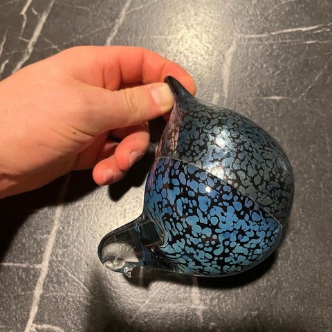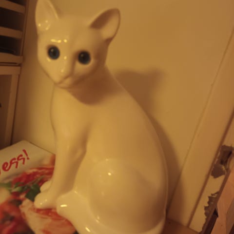 Moitteetomassa kunnossa oleva Sinisen talon kissa vuodelta -80. Takana taiteilijan omakätinen signeeraus. Saa tarjota. Nouto Kuopiosta.