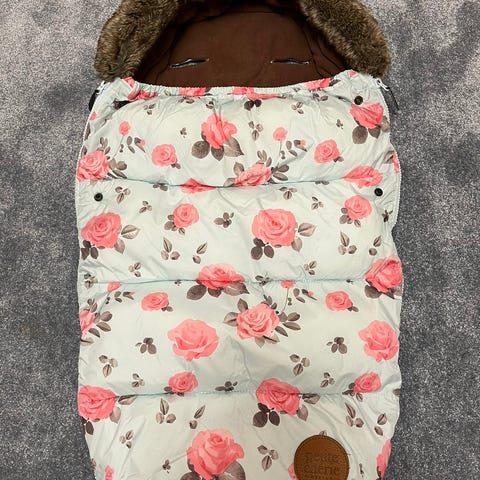 Myydään hyväkuntoinen vaaleanpunainen PetitCheri makuupussi. Saa kiinnitettyä kaukaloon tai ratasosan valjaisiin.