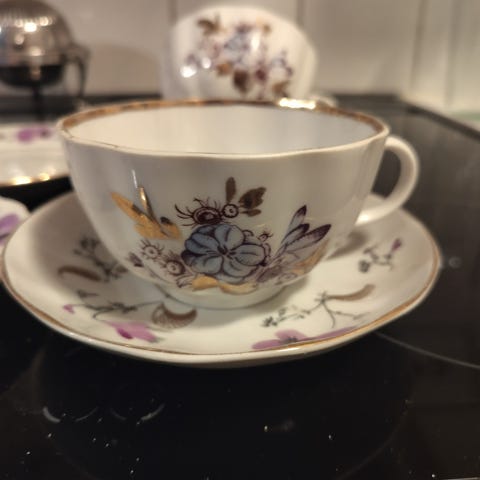 Teekuppi lautaset 5 kpl: 5€/kpl eli yhteensä 25€