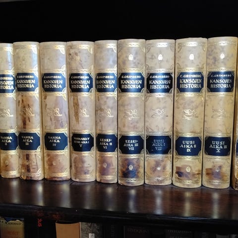 Myydään kuvissa oleva Carl Grimbergin kirja Kansojen historia osat 21-22, Uusin aika - hakemisto. Kirja on hyvässä kunnossa, mutta kansilehdissä on repeämiä.