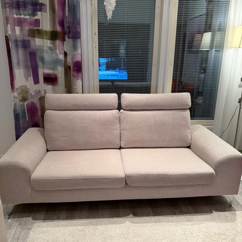 Sohva sijaitsee Liipolassa Lahdessa. Sohva on ollut kissa -ja koira taloudessa. Sohvassa oli tahra istuinpäällisessä. Istuinpäällinen on pesty ja tahraa ei enää ole.
