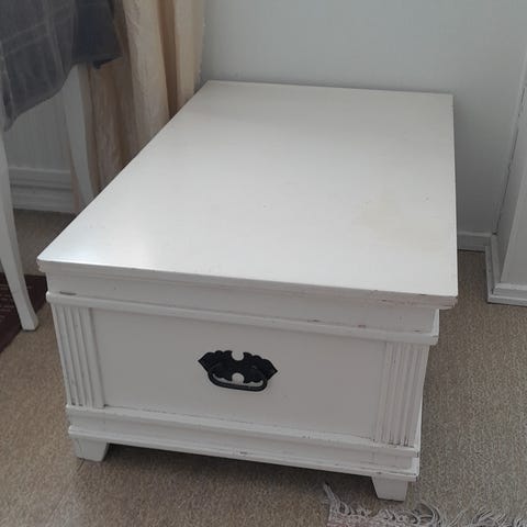 Tollainen siisti arkku ja edullinen, leveys 69cm, syvyys 49cm, korkeus 41cm.