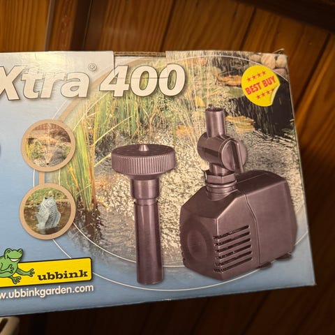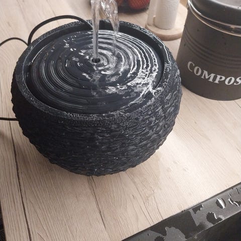 Suihkulähteen virtalähde. Pelkkä virtalähde, ei johtoja virtalähteestä eteenpäin.