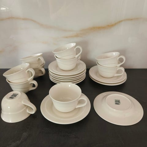 Täysin uutta vastaavat. Yhden kupin pohjassa valuvika, joka näkyy kuvassa. Lasite ei ole rikki.