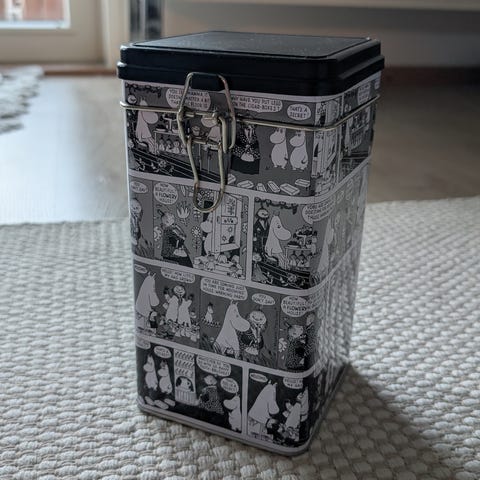 Muumi Martinex peltirasia / peltipurkki.