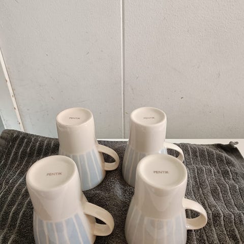 Hyväkuntoiset mukit, korkeus 7cm, suu 7cm.