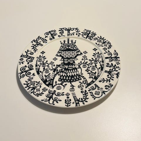 Muotoilija Klaus Haapaniemen fantasiataide ja Heikki Orvolan selkeä muotoilu yhdistyvät uniikissa Taika-sarjassa. Lumoavan sarjan kuviointi on saanut inspiraationsa kansanperinteen ja satujen värikkäästä kuvamaailmasta, joka nousee kauniisti esiin pelkistetyssä ja selkeässä muotoilussa. Monikäyttöiset ja kestävät astiat luovat taianomaista tunnelmaa ja satuhahmojen mielikuvituksellisuutta arjen kattauksiin. Monikäyttöinen Taika-lautanen sopii juhlakattauksiin ja arkikäyttöön. Värikkään pöllöaiheisen kuvioinnin runsaat yksityiskohdat nousevat kauniisti esiin puhtaanvalkoisessa lautasessa ja koristavat myös lautasen reunaa.