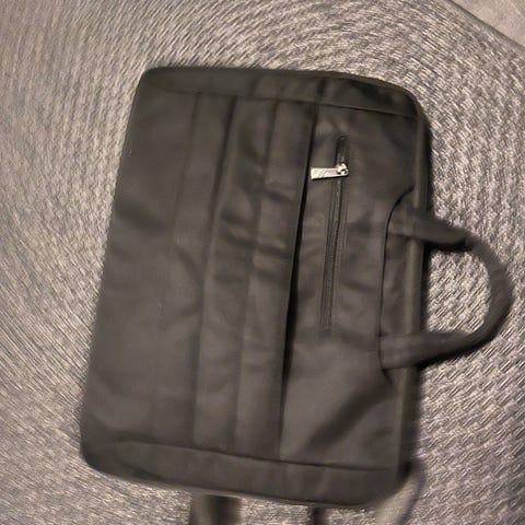 Musta kannettavan tietokoneen laukku.