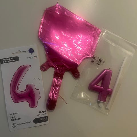 Numero 4 synttäri setti. Iso 40" vaaleansininen numero 4 ilmapallo ja numero 4 tähtisädetikku. Nouto Kontulasta tai postitse.