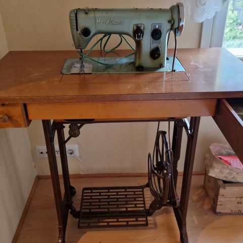 Tikkakosken Tikka ompelukone. Alkuperäiset käyttö/huoltoohjeet. Korkeus 74cm. Pöytä79x42cm. Lisäpöytä 18x42cm.