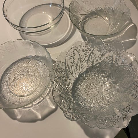 Lasikulho ja tarjoilulautanen