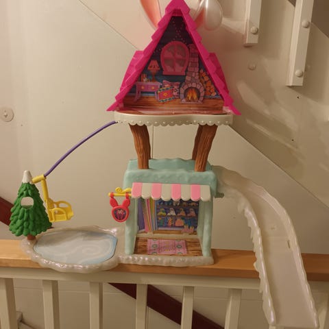 Hyväkuntoinen, täysin ehjä talo, huonekaluja ja tarvikkeita. Hahmot puuttuu. Alkuperäisessä pakkauksessa ollut nämä: