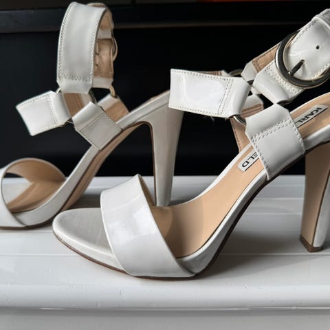 Tosi nätit, korkeat mustat, mokkajäljitelmä kiilakorkoiset sandaalit. Kerran kokeiltu ja todettu itselle liian korkeiksi eli ovat kuin uudet. Ostettu Munchenistä. Merkki Graceland, laadukkaan näköinen ja oloinen kenkä. Koko 38. Itsellä koko on 39 mutta mahtuvat hyvin. Koroke n.1,5 cm eli ovat jalkaan n.8,5 cm vaikka korottavat 10 cm. Turussa uittamolla. Hinta 7 euroa.