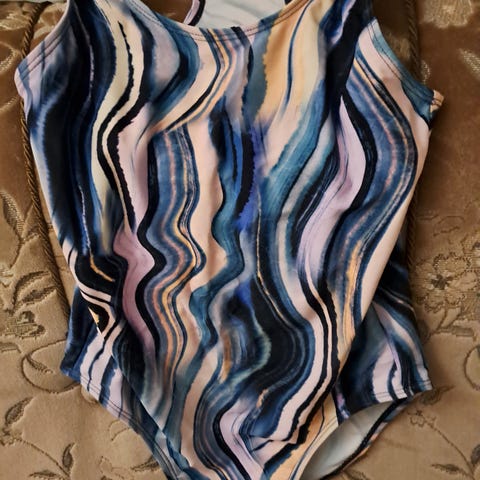 Sininen uimapuku.Sivuilla viivallista väritystä.Koko 152.Hinta 5€+ lähetys.