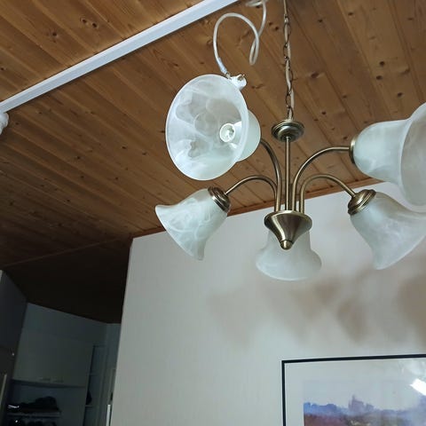 Tässä olisi ylimääräinen kattovalaisin.. kynttilälampuilla.. lasikuvut ehjät.