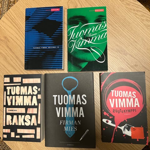 Kusti Miettisen alter egon seikkailut yltyvät paikoin juoppohullumaisiin mittoihin erona vain se, että rahaa on millä mällätä. Vimman teoksissa hämärtyy tarun ja todellisuuden rajat. Kovakantiset/hyväkuntoiset. Nouto Raisio/postitus 7e.