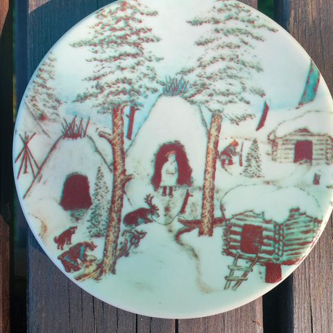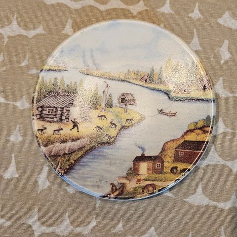 Arabia, Andreas Alariesto, Lappalaiset kesäaskareissa nro 42, koristelautanen, pieni, serikuva halkaisija n.12cm
