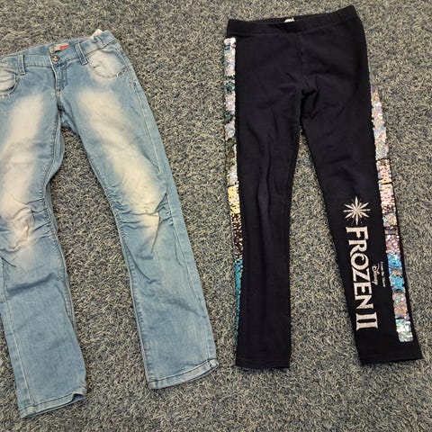 Farkut, koko 140. Lahkeensuut repaleiset takaa, muuten hyväkuntoiset. Disney-alkkarit, koko 140. Black Horse -kalsarit, koko 140. Nouto/ kulkeutuu omien menojen mukaan.