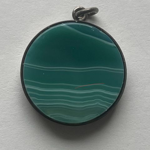 Musta akaatti kiviriipus, hopea 830, design Olli Ronkka.