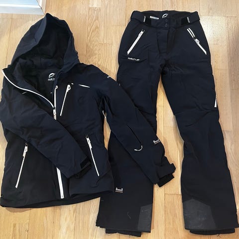 Hyväkuntoinen, puhdas, vettä hylkivä ,ulkoilupuku jossa takki keltainen/harmaa koko36 .Housut harmaat koko 34 . Hp.25€