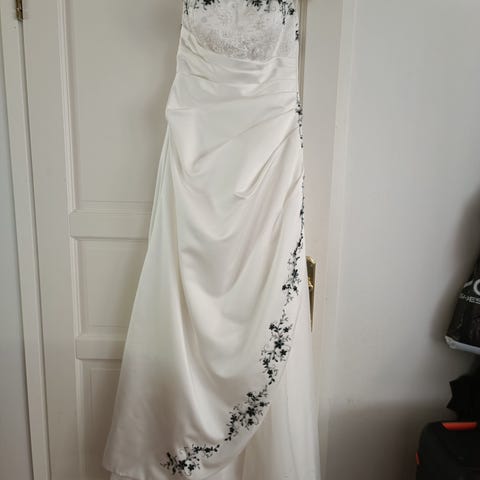 Myyntiin tämä ihanuus. Käytettynä ostettu, pukua on muokattu ompelijalla. Koko arvioisin vastaavan noin 36. Ollut päällä 158cm pitkällä morsiamella.
