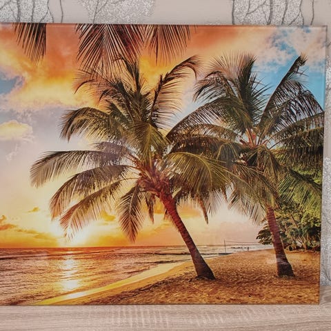 matkoilta ostettuja tauluja, tuon Mallorca taulun koko 18,5x23cm, mallorca taulussa lasilevy ja maisema lasin alla kohokuviollinen maisema , rakennettu puumaisista (balsa)osista eli ei tasomainen maalaus, taulun paksuus n. 1 cm