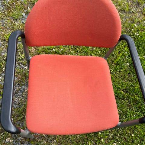 Hyväkuntoisia toimistotuoleja toinen ruskea käsinojallinen hinta 10 euroa ja toinen harmaalla kangasverhoilulla 20 euroa