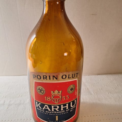 Oy Alkoholiliike Ab:n Kap Brandy -etiketti (irronnut, mutta säilytetty pullon ympärillä).
