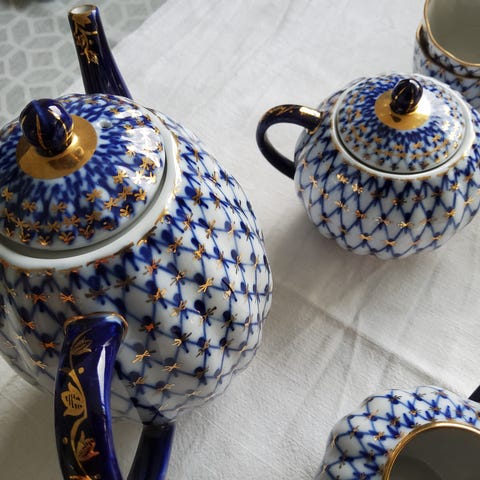 Lomonosov kahviastiasto, sininen ja kulta