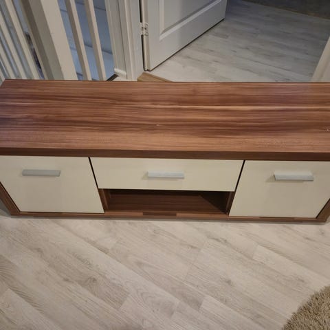 Myydään hyvässä kunnossa oleva Jyskista ostettu harmaa Dokkedal tv-taso.