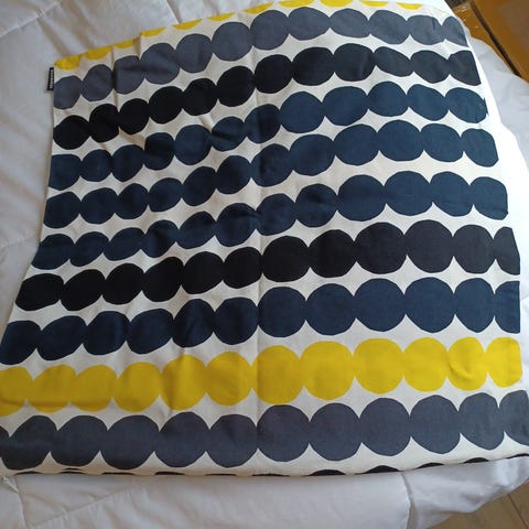Myydään Marimekko ”Pikku-Lompolo” Sunny tyynynpäälliset, siistit ja ehjät. 2-kappaletta. Kaunis raikas keväinen ja aurinkoinen kuosi.