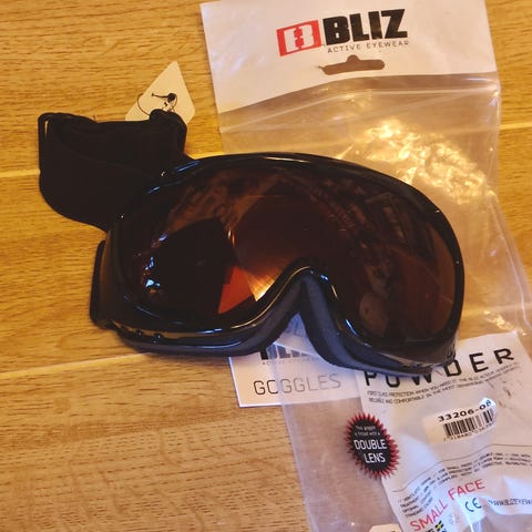 Käyttämättömät laskettelulasit, paketti vain avattu ja sovitettu. Linssin päällä suojakalvokin vielä paikallaan. Itselläni on M-koon kypärä ja nämä lasit olivat sen kanssa aavistuksen pienet.