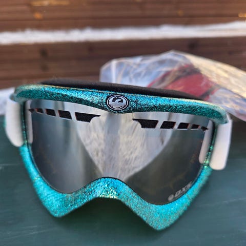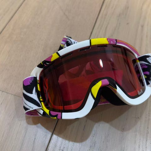 Dragon LumaLens, DXS-blur. Linssin väri harmaa/savu. Nauhan sisäpuolella silikoni -> pysyy hyvin paikoillaan kypärän pintaa vasten. Pehmukereunassa kasvoja vasten miellyttävä microfleecepinta. Sopii lähinnä lapsille, junior koko. Kypäräkokoa XS tai S käyttävälle laskijalle ovat sopivimmillaan.