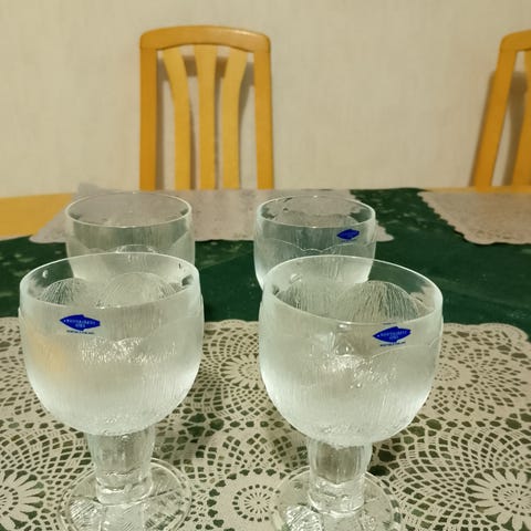 Kuvienlaiset täysin ehjät ja siistit astiat.1.kuvan Nuutajärven Irish Coffee Piccolo lasit joita 6kpl:ta,10eur kpl tai kaikki 6 50eur.2.kuvan Wirkkala tuopit 10eur kpl.3.kuvan Apollo vaasi 30eur.4.kuvan litteä maljakko 25eur.Nouto Muuruvedeltä.