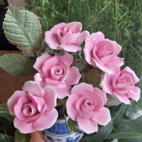 Kaunis Vintage Moss Rose vanha mummon kaapistosta ,pienillä jaloilla oleva koristeastia,vaikkapa vaikka koruille. Tai vaikkapa lahjaksi. Kork noin ilman kantta.5.5cm kannen kanssa 7.5cm pit.11cm. syv 8cm. Hinta 25 e+pk